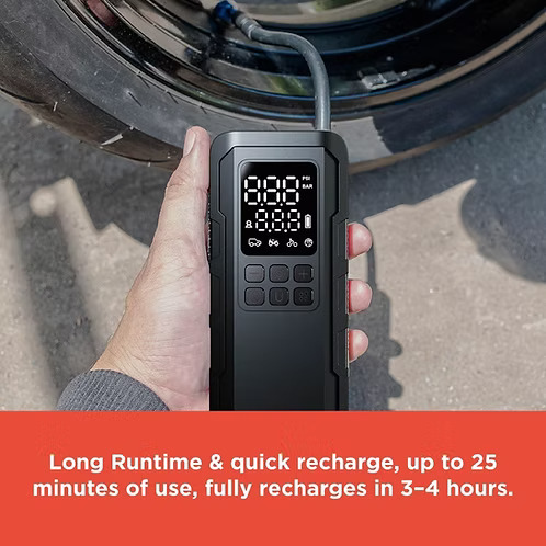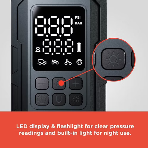 • Smart Digital Inflation: Automatically detects tire pressure and shuts off at preset levels up to 150 PSI. Ideal for cars, motorcycles, bicycles, e-bikes, and sports balls.