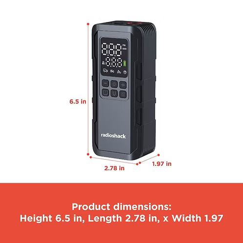 With up to 150 PSI, a high airflow rate, and up to 25 minutes of runtime, this pump is fast, reliable, and durable. The digital LED screen gives you clarity in seconds, and when the sun sets, the built-in flashlight keeps the job going. Plus, it’s a power bank in disguise, perfect for emergencies when your devices are running low. Designed for outdoor enthusiasts, commuters, and everyday drivers, wrapped in sleek ABS plastic and trusted engineering. RadioShack continues to bring innovation that’s built to last, certified for safety, and crafted with you in mind. Because being prepared isn’t just smart, it’s essential.