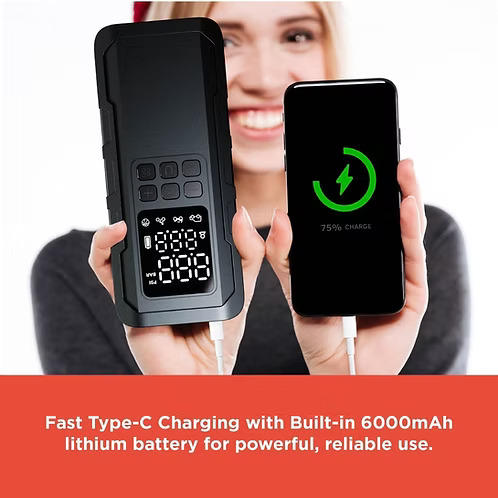 • Multi-Functional Utility: Doubles as a power bank and emergency flashlight, equipped with a USB Type-C charging port and LED screen for quick readouts.